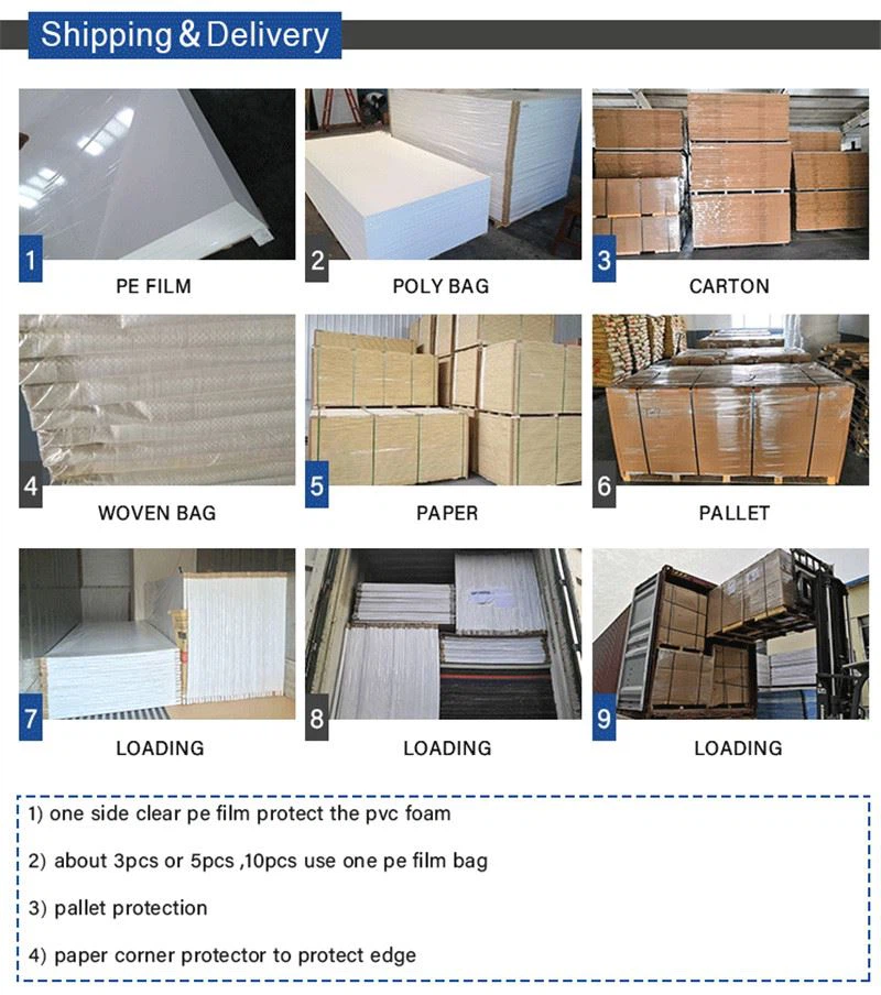 Bahan: PVC, kalsium karbonat, stabilizer (bebas timbal) Ukuran: 915x1830, 1220x2440, 1560x3050, 2050x3050mm Ketebalan: 2mm-15mm Warna:Hitam, Putih, Transparan, Kustom Gunakan:Kabinet, Furnitur, Iklan, Percetakan, Surat, Kerajinan Tangan